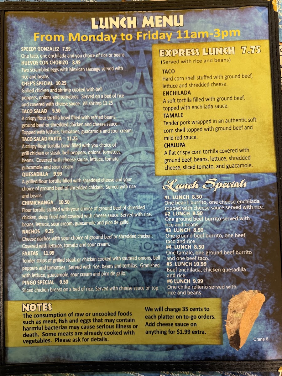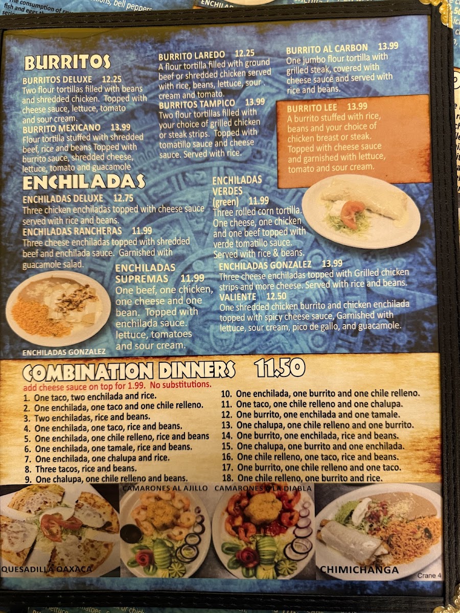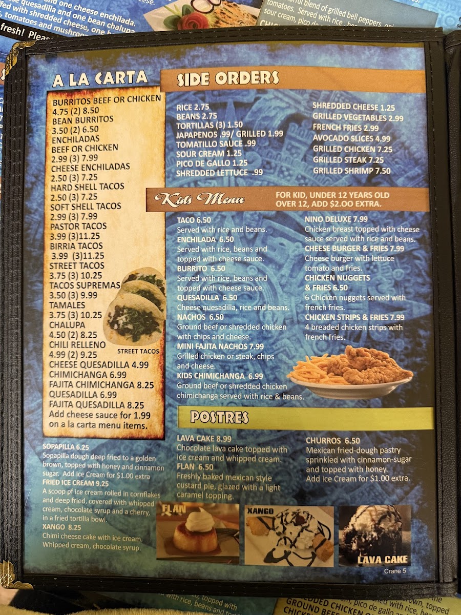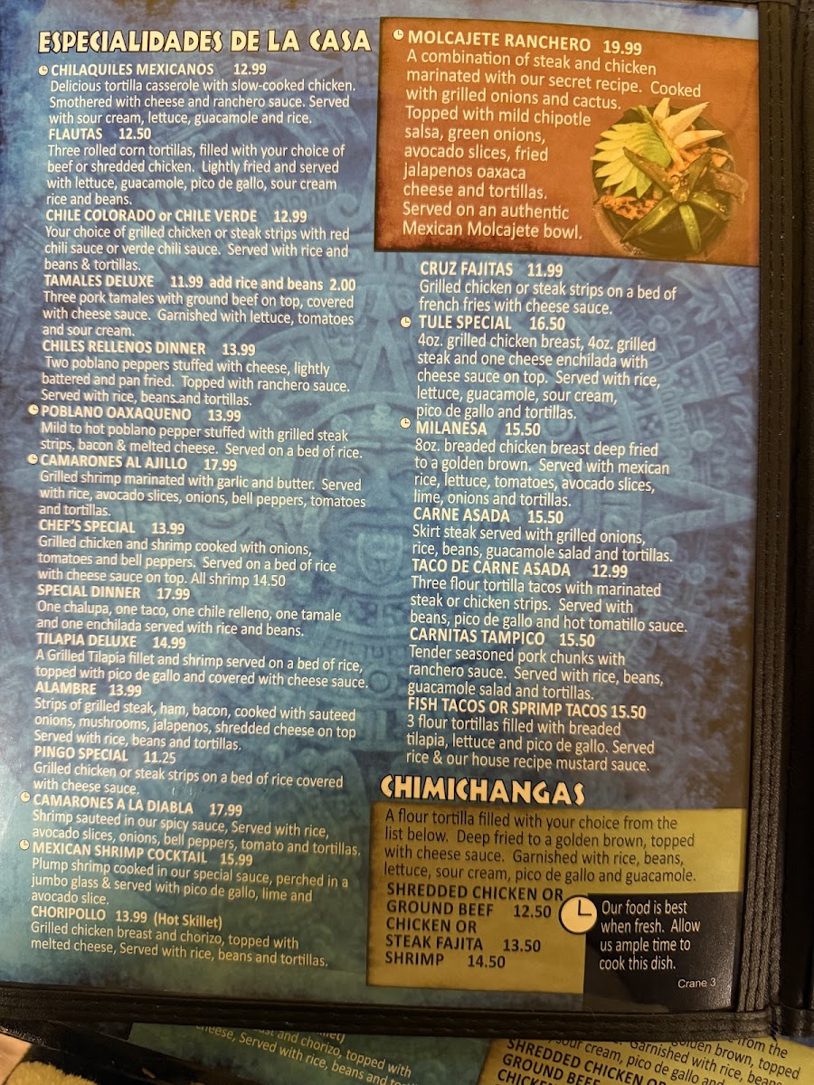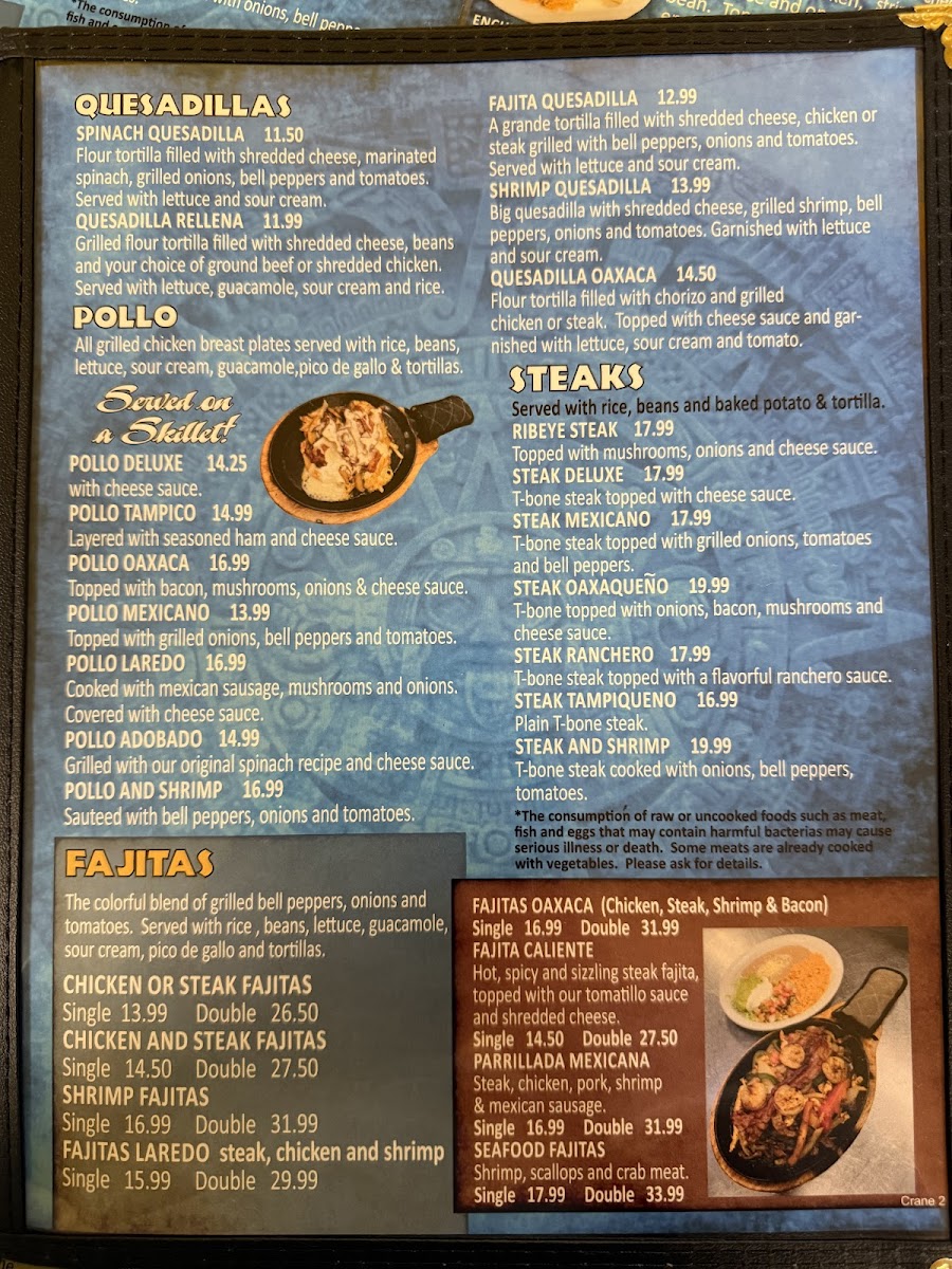 If you're craving authentic Mexican flavors, look no further than Oaxaca Crane Mexican Restaurant Menu. Located at 306 W Rose Ave in Crane, Missouri, this vibrant spot serves up a delicious array of traditional Mexican dishes that are sure to satisfy any appetite. From sizzling fajitas to mouthwatering tacos, every dish is crafted with fresh ingredients and a touch of local flair. The menu offers a variety of options, whether you're in the mood for a hearty burrito or a lighter, flavorful salad. Each bite transports you to the heart of Oaxaca, bringing the rich, bold flavors of Mexico to your table. Whether dining with family or friends, there's something for everyone at Oaxaca Crane Mexican Restaurant.